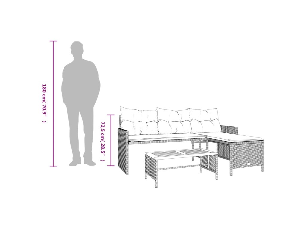 Tato zahradní pohovka ve tvaru písmene L je dokonalým doplňkem vaší zahrady, terasy nebo dvorku a poskytne vám pohodlné a příjemné místo, kde si můžete povídat s rodinou a přáteli nebo jen tak odpočívat a užívat si pobyt venku.