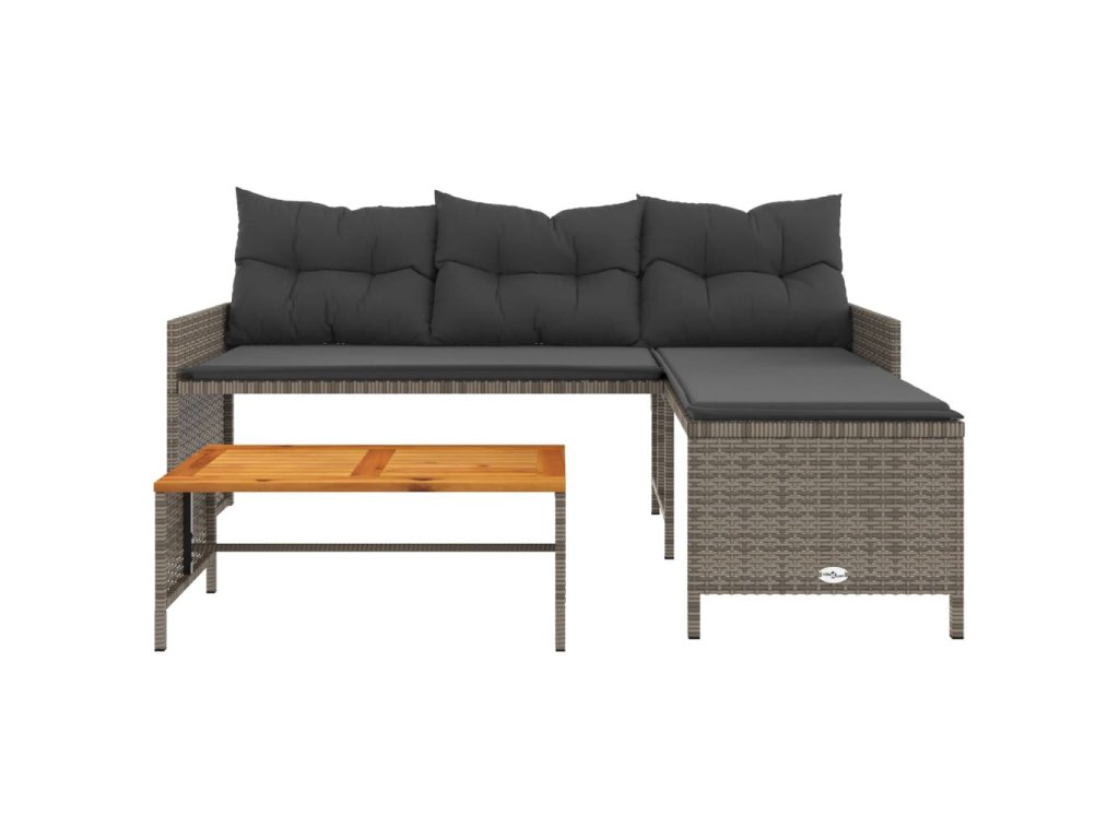 Zahradní pohovka ve tvaru L stolek a podušky šedá polyratan 365582