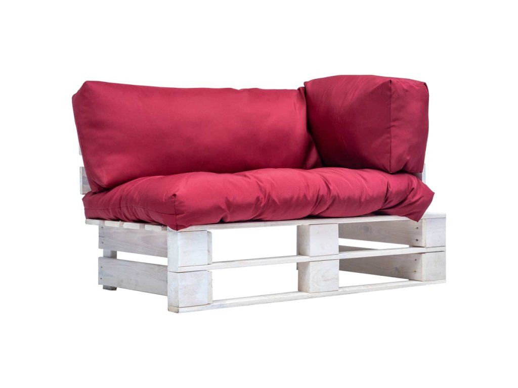 Zahradní pohovka z palet s červenými poduškami borovice 277382