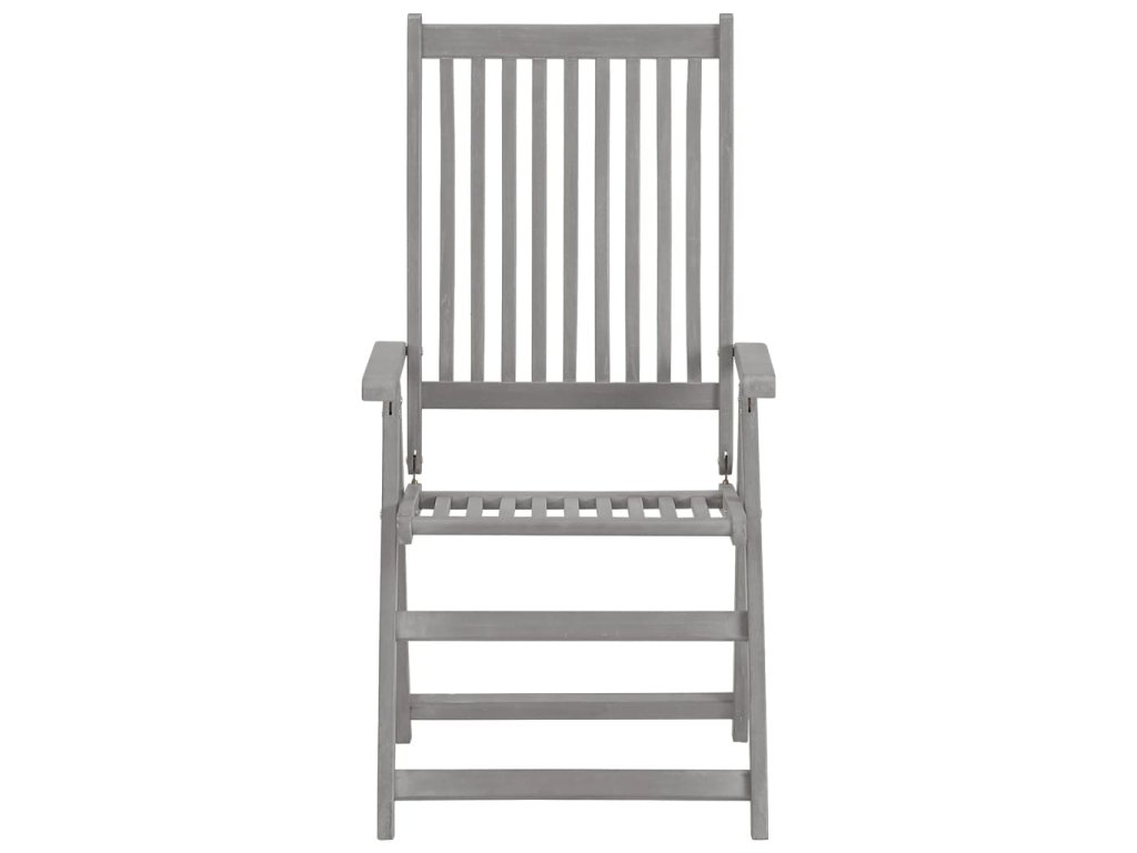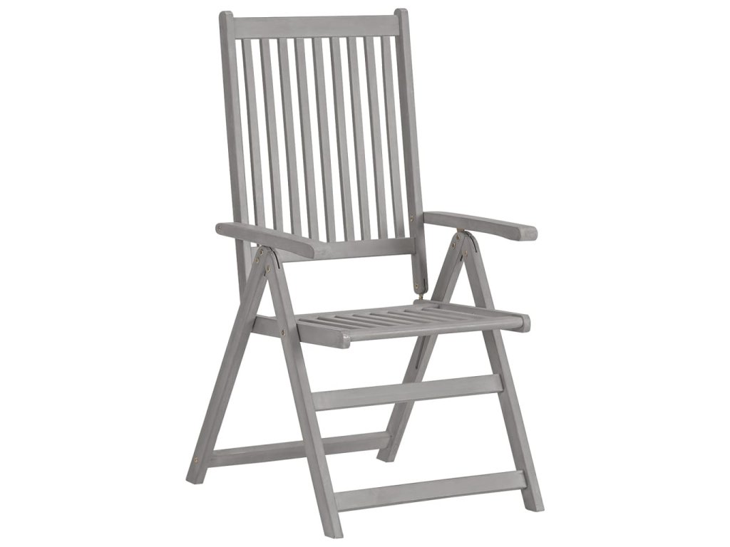 Křesla jsou vyrobená z masivního akáciového dřeva s šedou povrchovou úpravou. Akácie je tvrdé dřevo s hustou kresbou. Zahradní židle mají překrásný design, jsou stabilní, hodně toho vydrží a vypadají velice atraktivně. Opěradla židlí lze nastavit do 5 poloh, takže si vždy najdete tu nejpohodlnější, která vám zrovna vyhovuje. Podušky vám při odpočinku zajistí mimořádné pohodlí. Jsou vyrobené ze 100% polyesteru s voděodolnou povrchovou úpravou a každá z nich je opatřená elastickou gumičkou a 2 páry šňůrek, za které ji můžete pevně přivázat k židli.