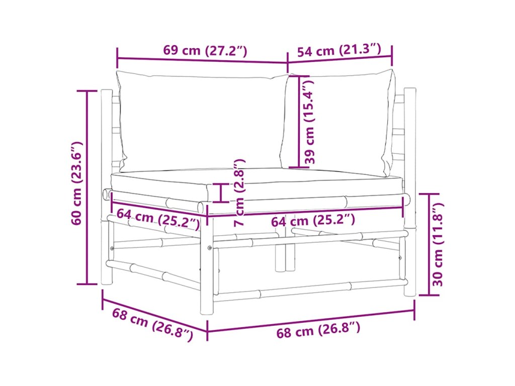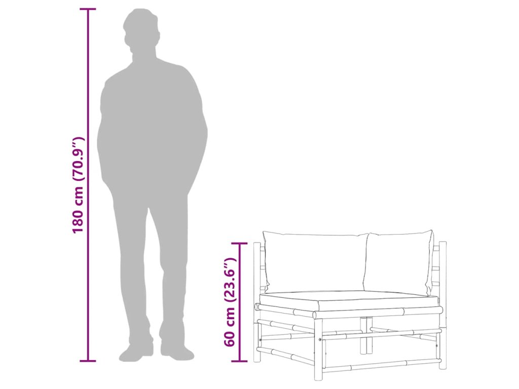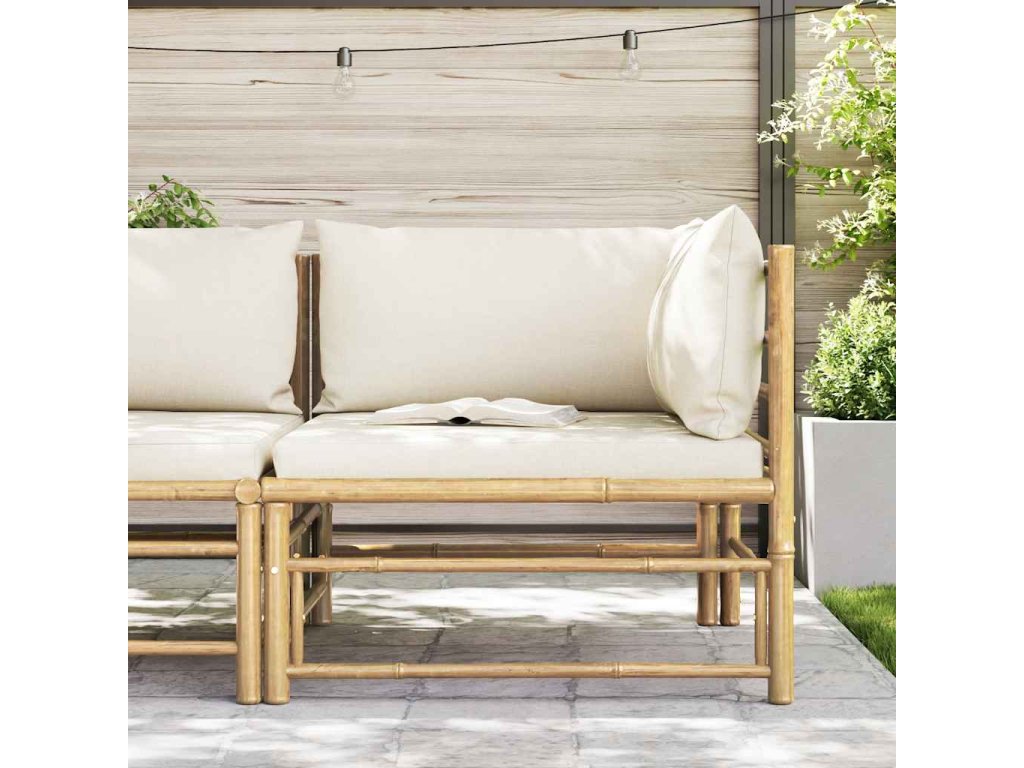 Zahradní pohovka je vyrobená z bambusu, takže je robustní a snadno se čistí. Silně polstrované podušky a polštáře za záda zpříjemní vaše chvíle odpočinku mimořádným pohodlím. Zahradní sedačka má lehkou konstrukci, můžete ji tedy snadno přenášet podle vašich potřeb. A její modulární design vám dává naprostou svobodu umístit ji přesně tak, jak potřebujete.