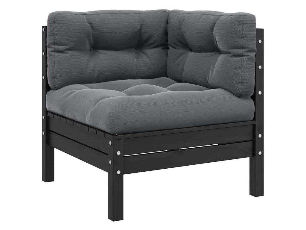 Zahradní rohová pohovka s poduškami černá masivní borovice 806632