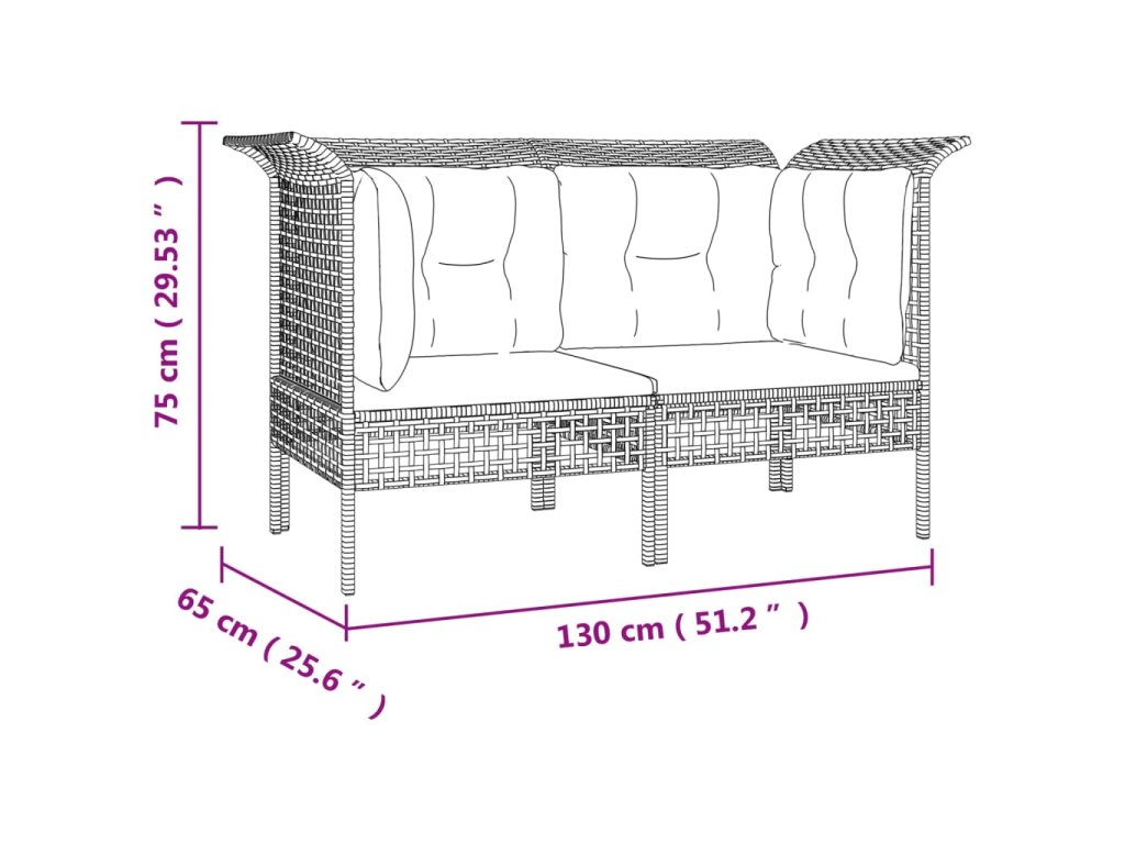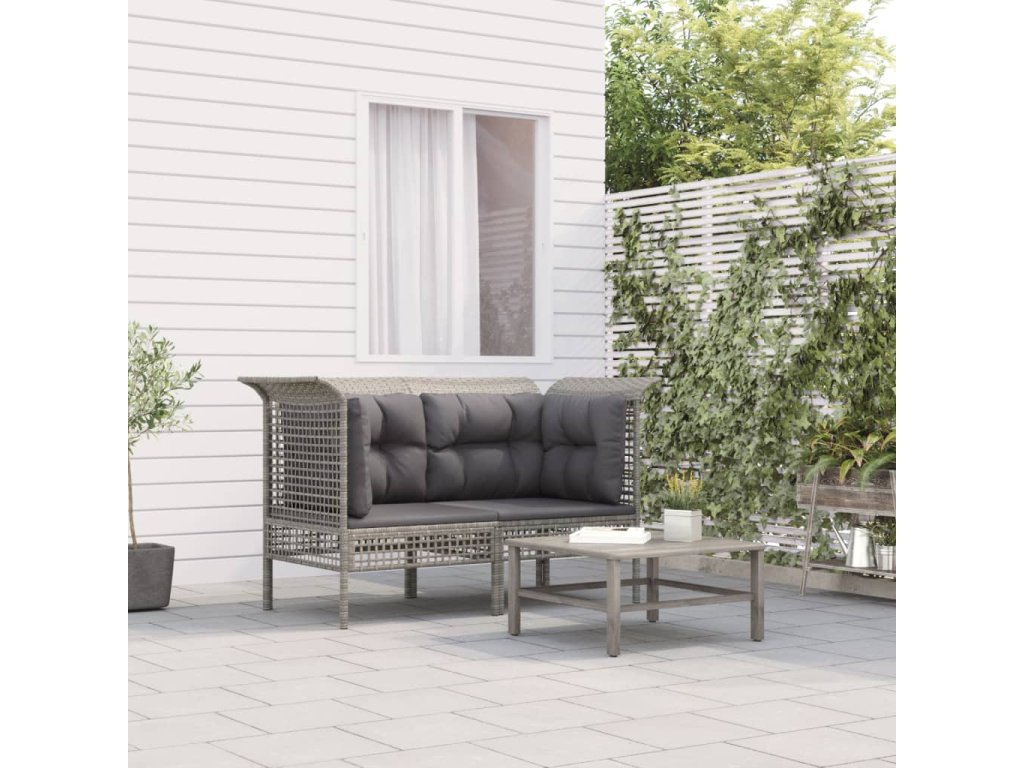 Zahradní rohové pohovky s poduškami 2 ks šedé polyratan 319660