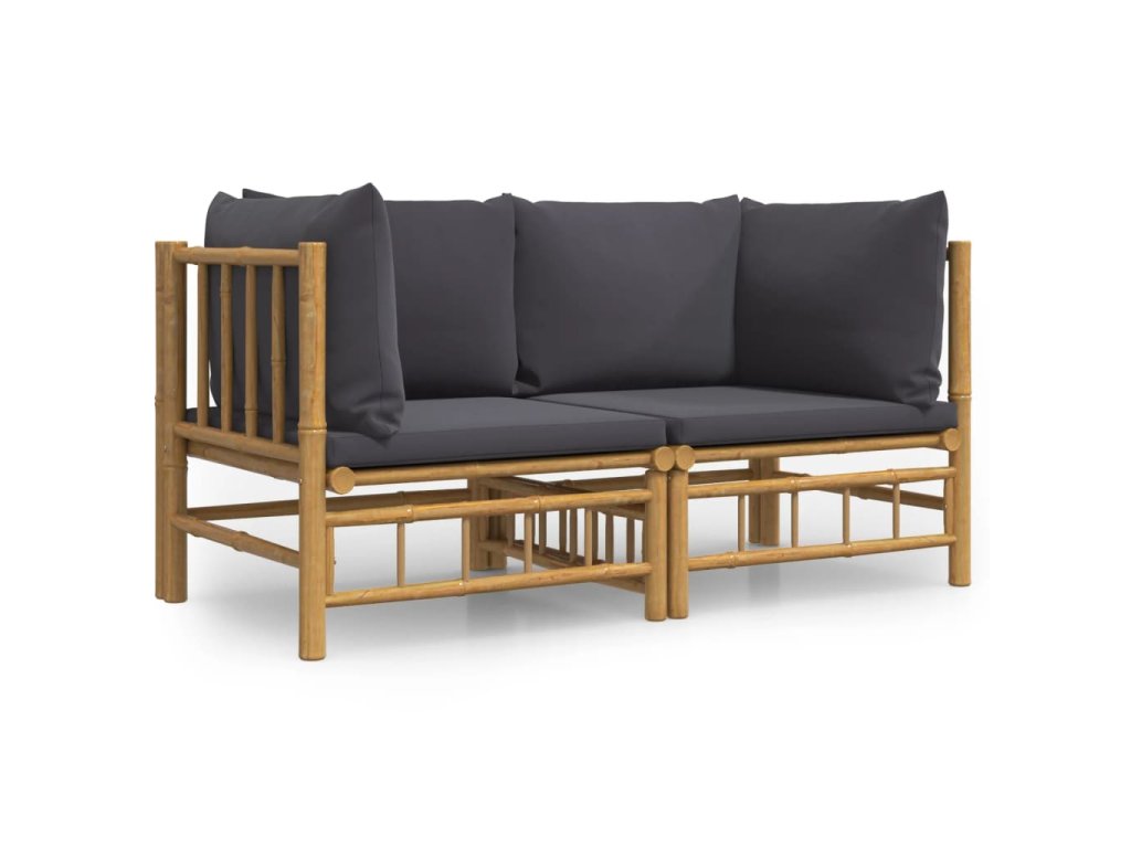 Zahradní rohové pohovky s tmavě šedými poduškami 2 ks bambus 3155214