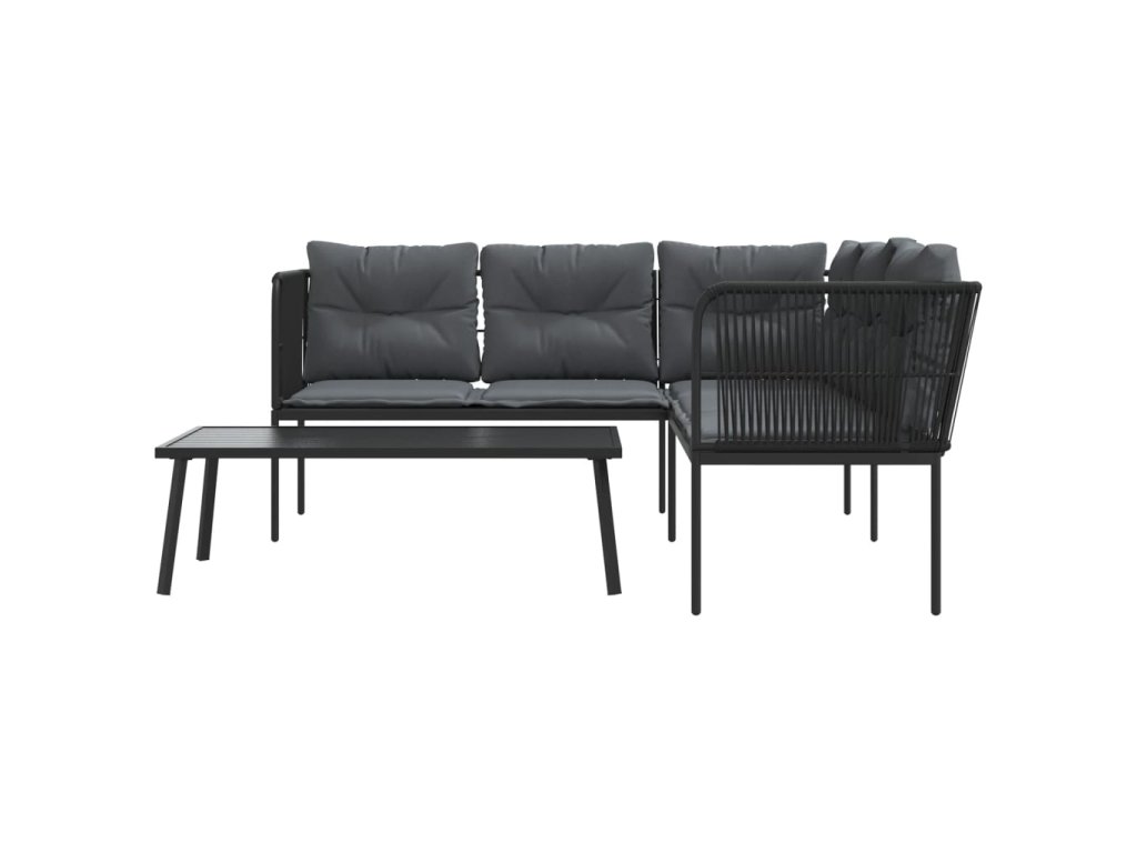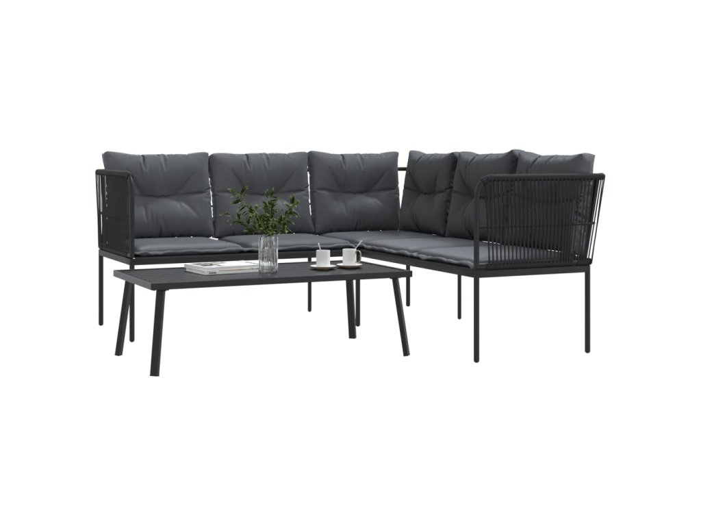 Zahradní sedací souprava s poduškami černá ocel a textilen 3283745