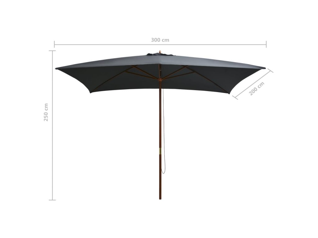 Zahradní slunečník s dřevěnou tyčí 200 x 300 cm antracitový 44513