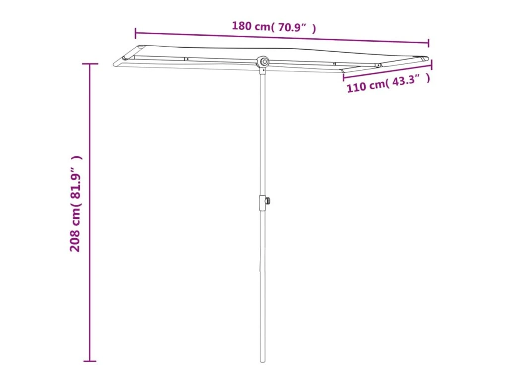 Zahradní slunečník s hliníkovou tyčí 180 x 110 cm antracitový 47330