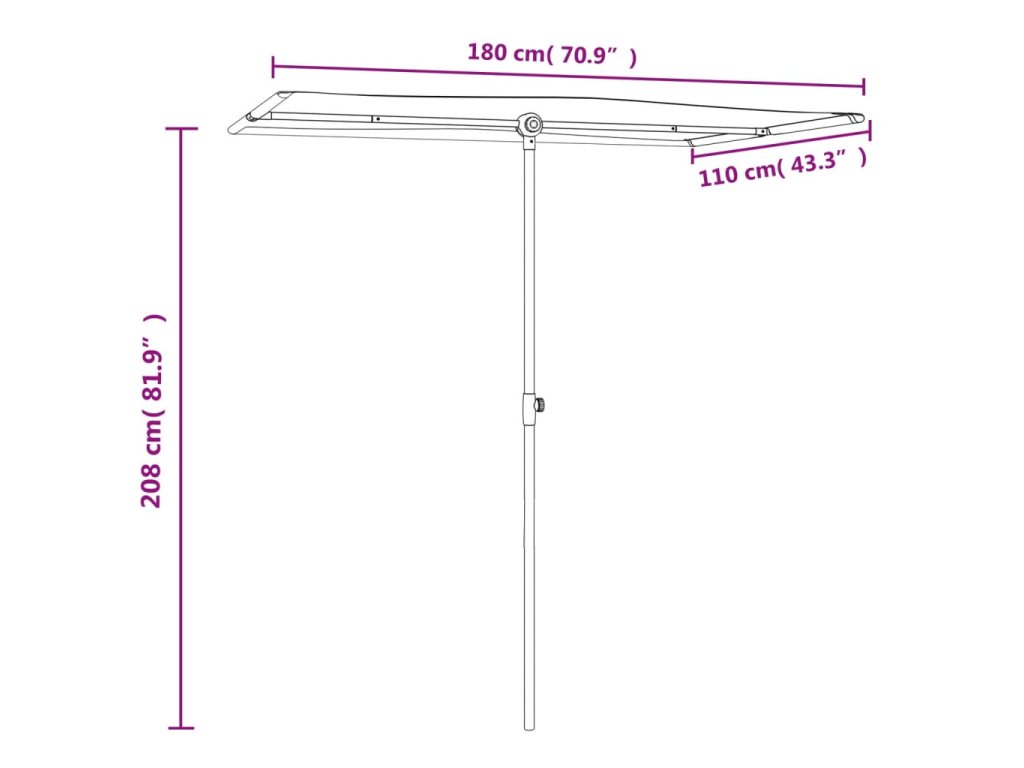 Stříška slunečníku je vyrobená z polyesterové tkaniny, která nebledne a nepropouští škodlivé UV záření, takže vám poskytne optimální ochranu před sluncem. Navíc se snadno čistí. Silné hliníkové tyče zajišťují, že je slunečník mimořádně stabilní a má dlouhou životnost. Zahradní slunečník lze otáčet o 180 stupňů, úhel stříšky si tedy můžete jednoduše nastavit podle pohybů slunce. Sestavení produktu je nenáročné.