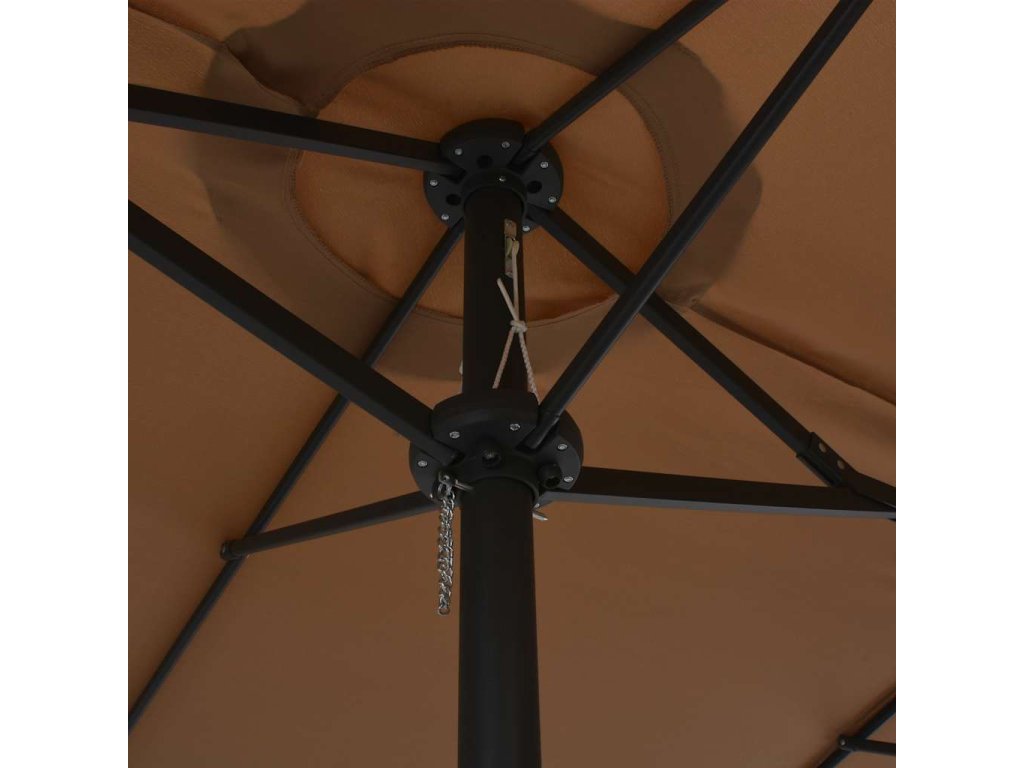 Stříška slunečníku je vyrobena z polyesterové tkaniny, která nepropouští škodlivé UV záření a nevybledne, a poskytne vám optimální ochranu před sluncem. Navíc se snadno čistí. Je vybaven pevnou křížovou základnou pro větší stabilitu. Exkluzivní konstrukce tohoto slunečníku vám nabízí mimořádně velkou plochu k blokování slunce. Silná hliníková tyč s 12 odolnými žebry zajišťuje, že se slunečník nehýbe a hodně toho vydrží. Zahradní slunečník disponuje klikovým mechanismem, což znamená, že se snadno otevírá i zavírá. Sestavení výrobku je jednoduché.