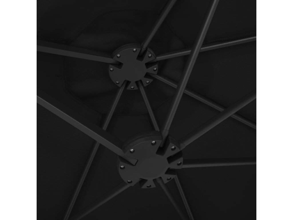 Tento slunečník s dvojitou stříškou vám poskytne stín a ochrání vás tak před sluníčkem a jeho škodlivým UV zářením.