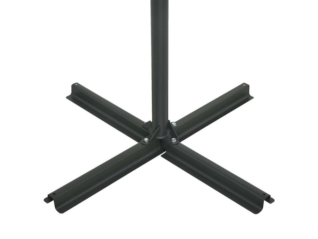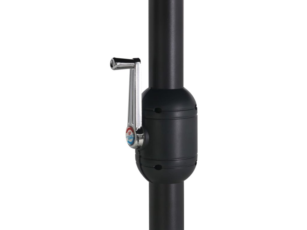 Stříška slunečníku je vyrobena z polyesterové tkaniny, která nepropouští škodlivé UV záření a nevybledne, a poskytne vám optimální ochranu před sluncem. Navíc se snadno čistí. Je vybaven pevnou křížovou základnou pro větší stabilitu. Exkluzivní konstrukce tohoto slunečníku vám nabízí mimořádně velkou plochu k blokování slunce. Silná hliníková tyč s 12 odolnými žebry zajišťuje, že se slunečník nehýbe a hodně toho vydrží. Zahradní slunečník disponuje klikovým mechanismem, což znamená, že se snadno otevírá i zavírá. Sestavení výrobku je jednoduché.