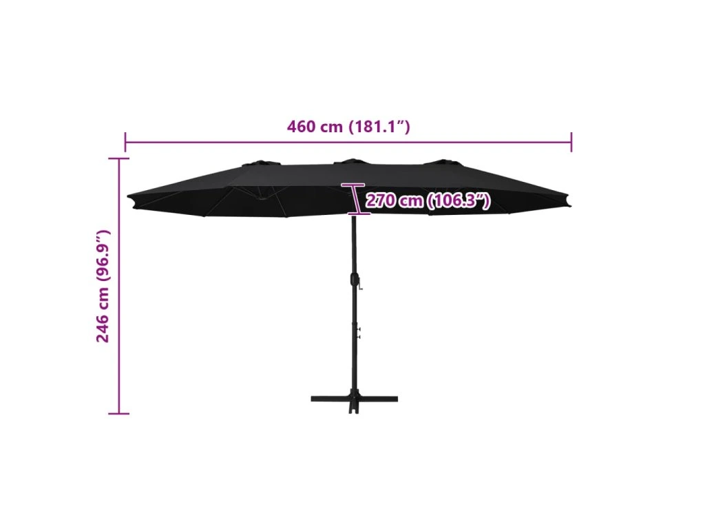 Zahradní slunečník s hliníkovou tyčí 460 x 270 cm černý 47302