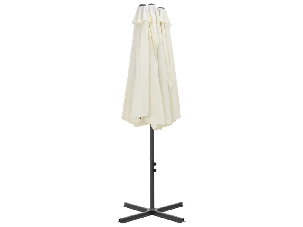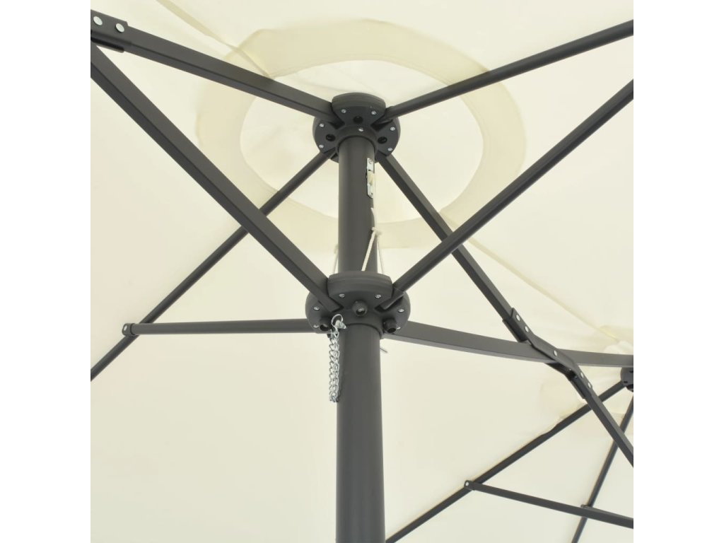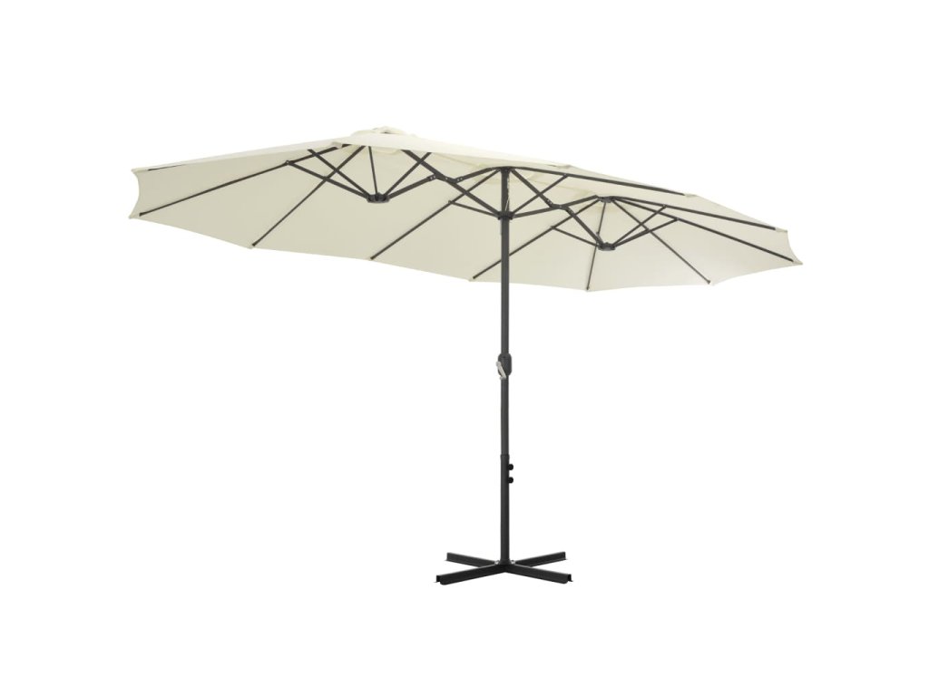 Tento slunečník s dvojitou stříškou vám poskytne stín a ochrání vás tak před sluníčkem a jeho škodlivým UV zářením.