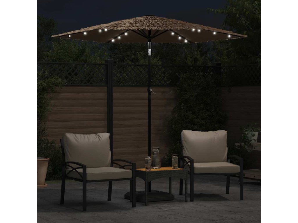 - Jasná LED světla: Integrovaná LED světla slunečníku osvětlí váš venkovní obytný prostor a vytvoří útulnou a romantickou atmosféru po západu slunce.