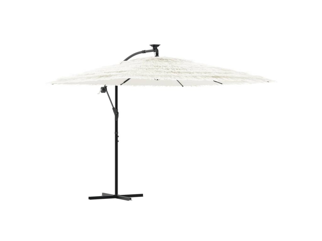 - Ochrana proti slunci a dešti: Tento venkovní slunečník je vyroben z odolného polyesteru a poskytuje ochranu před sluncem a deštěm.