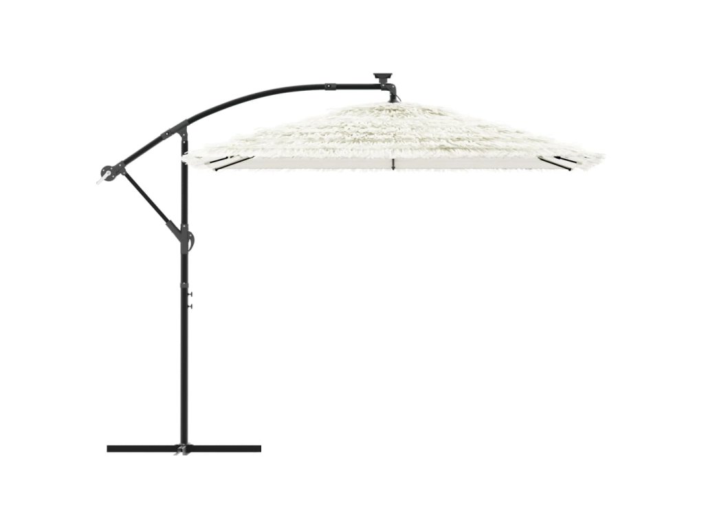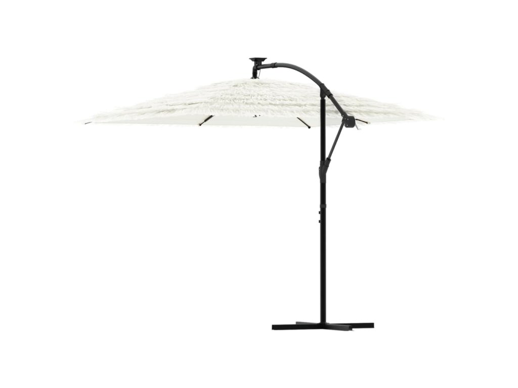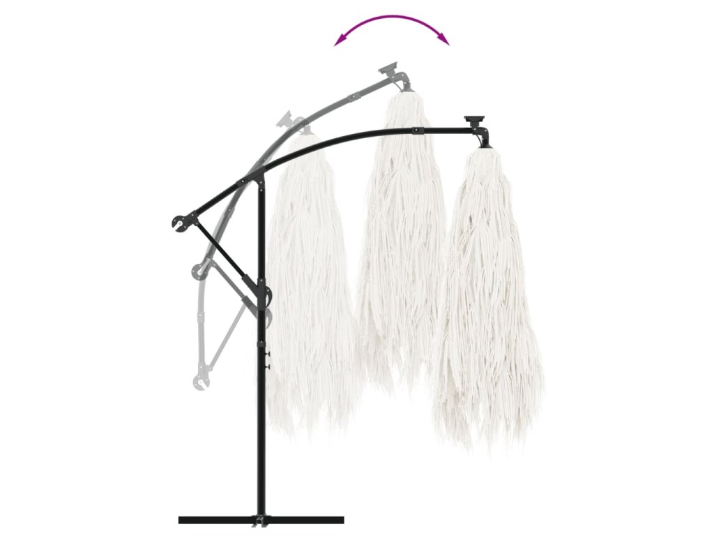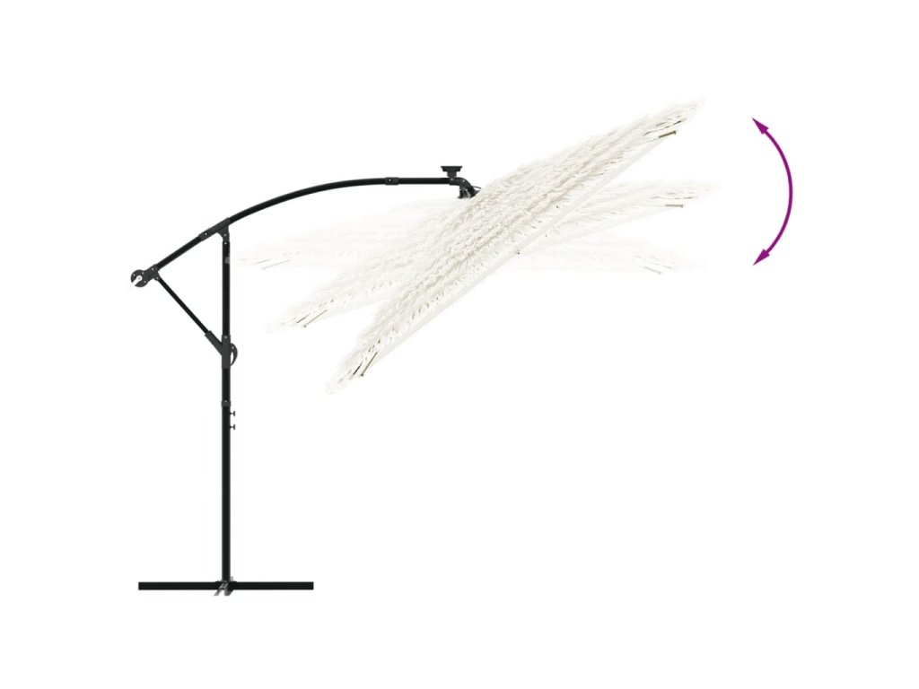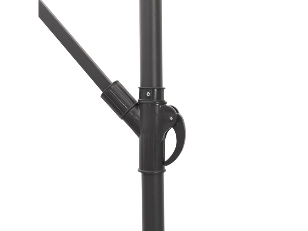 - Robustní konstrukce: Tento zahradní slunečník se opírá o robustní tyč a žebra v horní části, která zajišťují, že kryt zůstane vzpřímený i za větrných dnů.