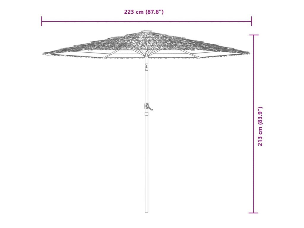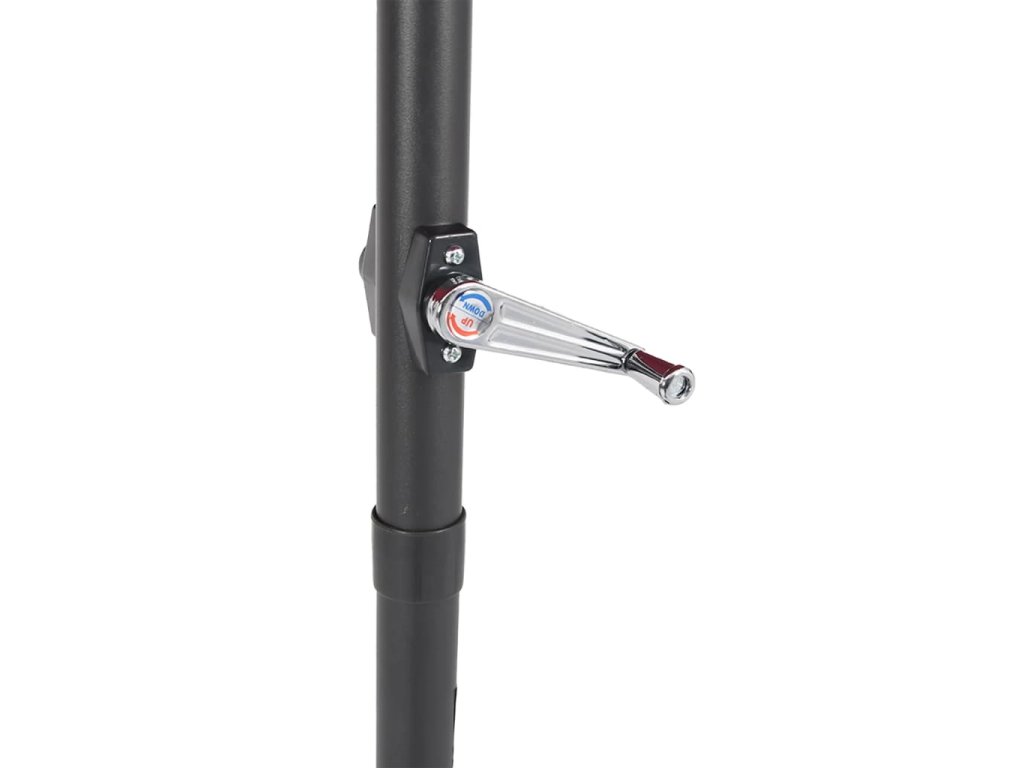 - Robustní konstrukce: Tento zahradní slunečník se opírá o robustní tyč a žebra v horní části, která zajišťují, že kryt zůstane vzpřímený i za větrných dnů.