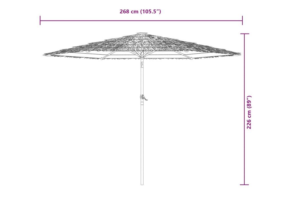 - Robustní konstrukce: Tento zahradní slunečník se opírá o robustní tyč a žebra v horní části, která zajišťují, že kryt zůstane vzpřímený i za větrných dnů.