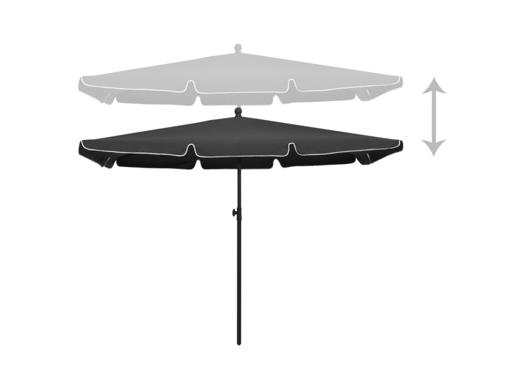 Stříška slunečníku je vyrobená z polyesteru, který nebledne a nepropouští škodlivé UV záření, takže vám poskytne optimální ochranu před sluncem a snadno se čistí. Pevná ocelová tyč se 4 odolnými žebry přispívá k výtečné stabilitě produktu a prodlužuje jeho životnost. Exkluzivní design zahradního slunečníku vám umožní sklopit slunečník a chránit se před sluncem po celý den.