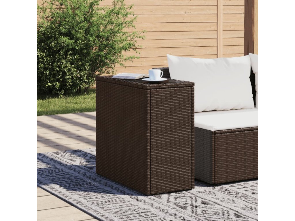 Zahradní stolek skleněná deska hnědý 58x27,5x55 cm polyratan 366214
