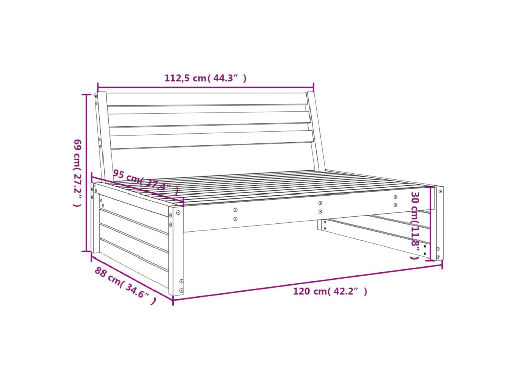 Tato dřevěná zahradní středová pohovka s lamelovou konstrukcí bude skvělým doplňkem vaší zahrady, dvorku nebo terasy, kde si budete moct užít příjemné chvíle s rodinou či přáteli.