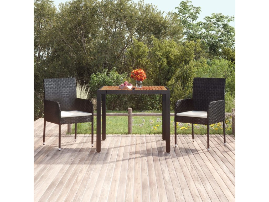 - Materiál: PE ratan, práškově lakovaná ocel, masivní akáciové dřevo s olejovou povrchovou úpravou