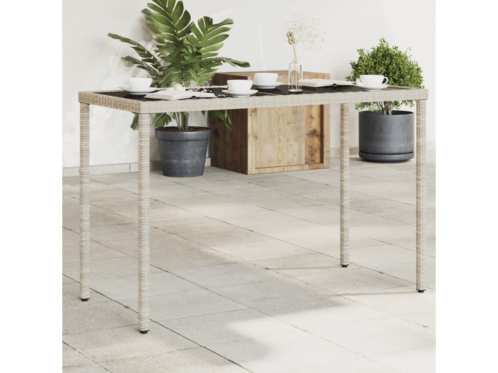 Zahradní stůl skleněná deska světle šedý 115x54x74 cm polyratan 365079