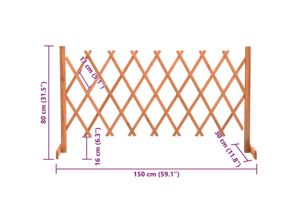 Plotový panel je vyrobený z masivního jedlového dřeva, takže je odolný a vhodný pro venkovní použití. Každý dílec lze roztáhnout do šířky až 150 cm, plot tedy využijete na zahrádkách různých velikostí. Obzvlášť působivě vynikne i podél chodníčků nebo záhonů.