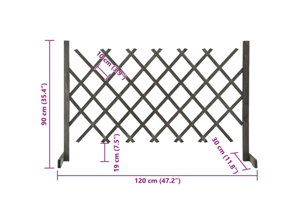 Plotový panel je vyrobený z masivního jedlového dřeva, takže je odolný a vhodný pro venkovní použití. Každý dílec lze roztáhnout do šířky až 120 cm, plot tedy využijete na zahrádkách různých velikostí. Obzvlášť působivě vynikne i podél chodníčků nebo záhonů.
