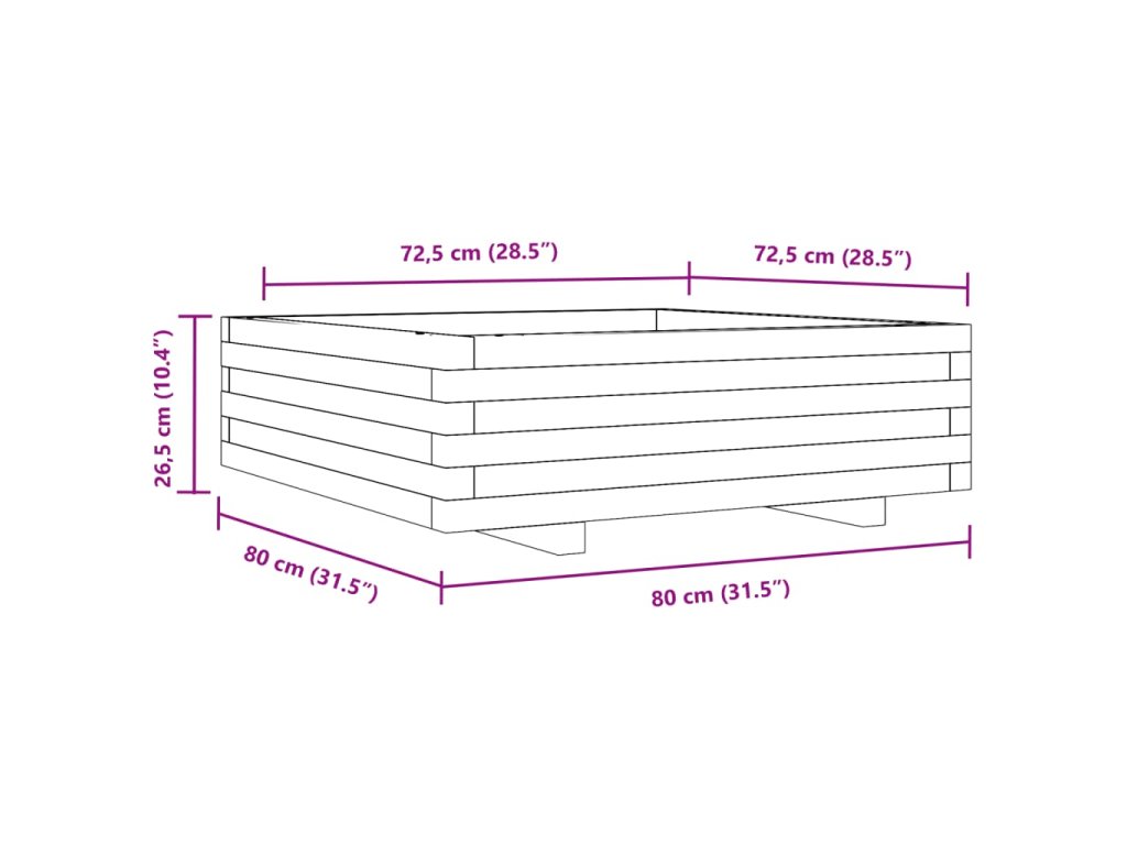 Zahradní truhlík 80 x 80 x 26,5 cm masivní borovice 847308