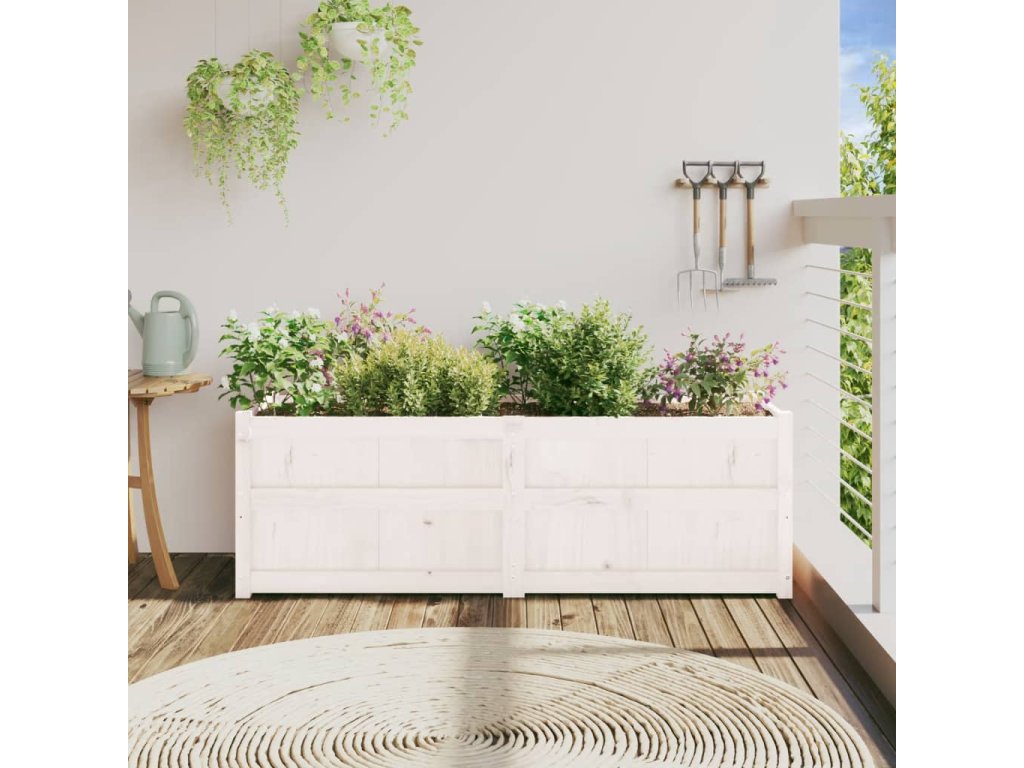 Zahradní truhlík bílý 150 x 50 x 50 cm masivní borovice 837485