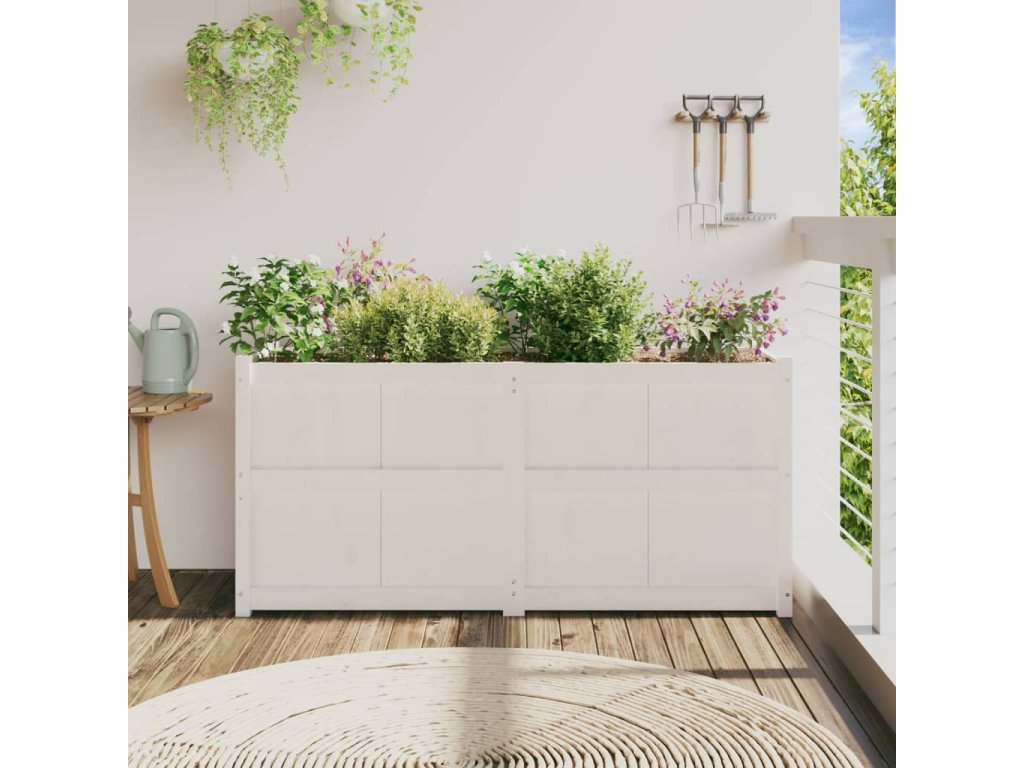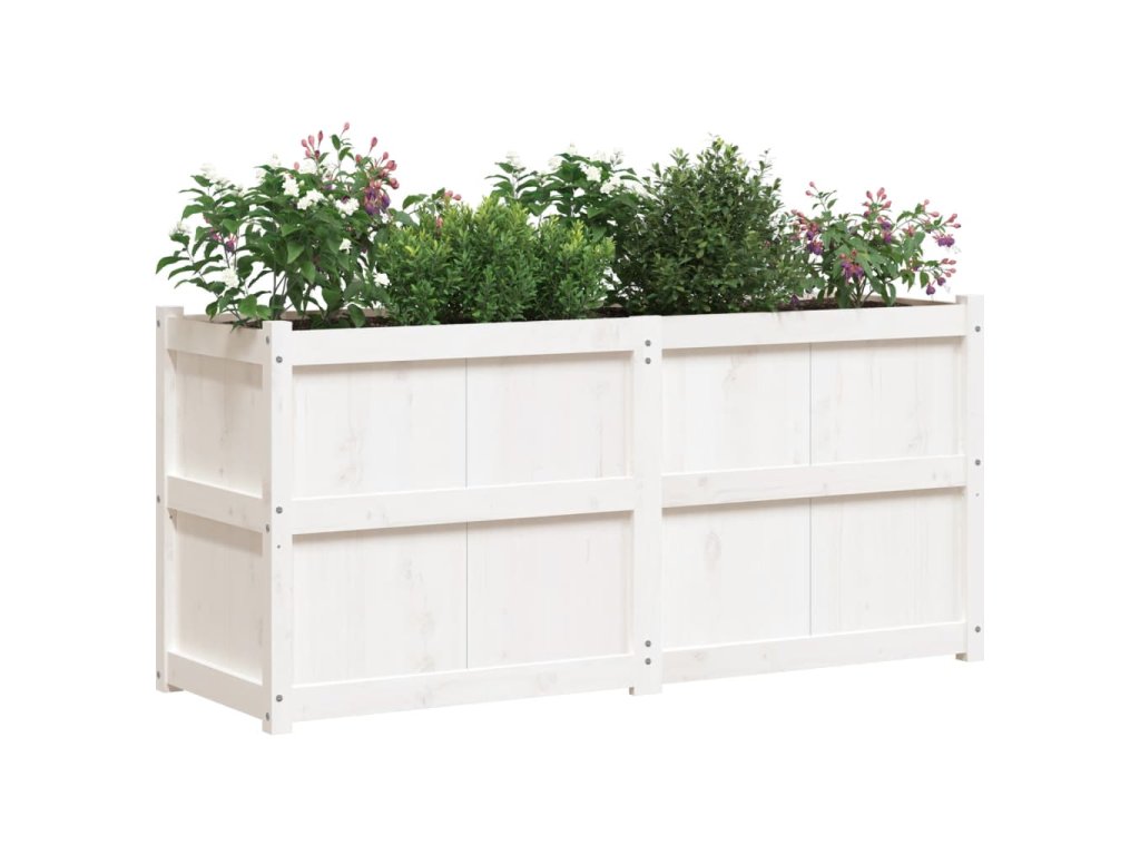 Zahradní truhlík bílý 150 x 50 x 70 cm masivní borovice 837490
