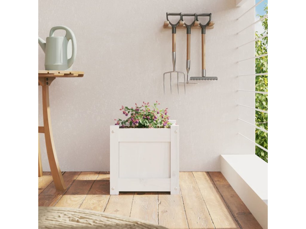 Zahradní truhlík bílý 31 x 31 x 31 cm masivní borovice 837396
