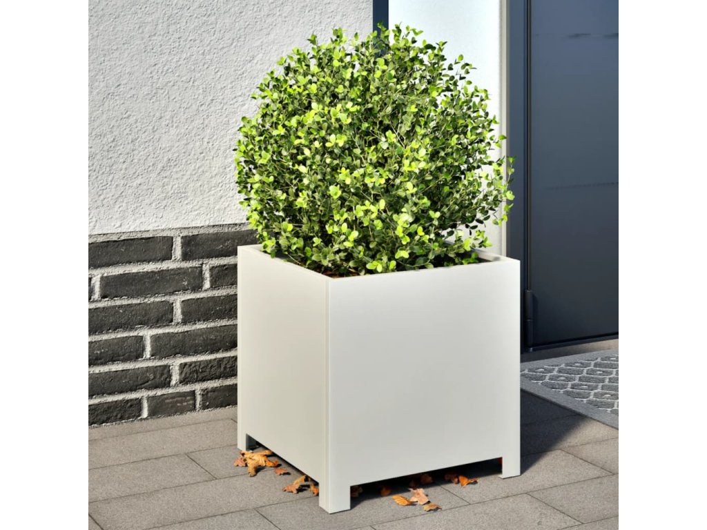Zahradní truhlík bílý 40 x 40 x 40 cm ocel 851201