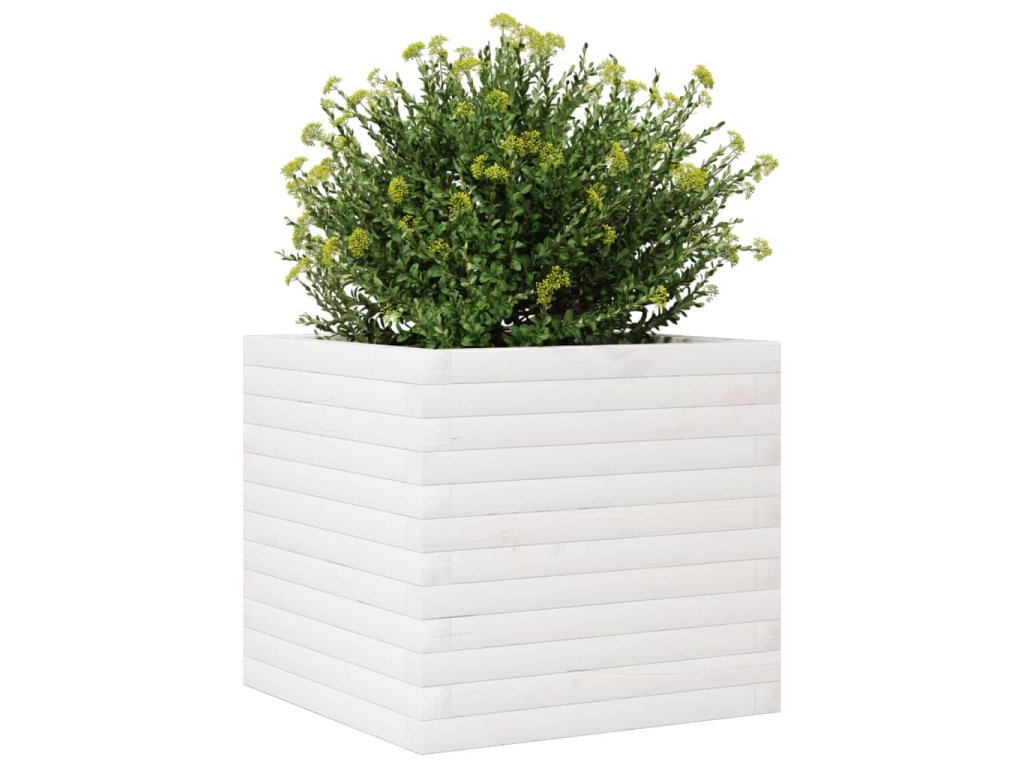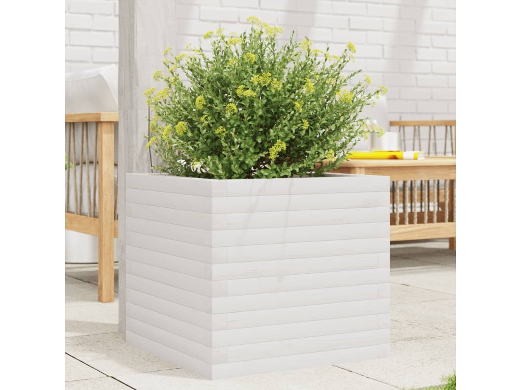 Zahradní truhlík bílý 50 x 50 x 45,5 cm masivní borové dřevo 847244