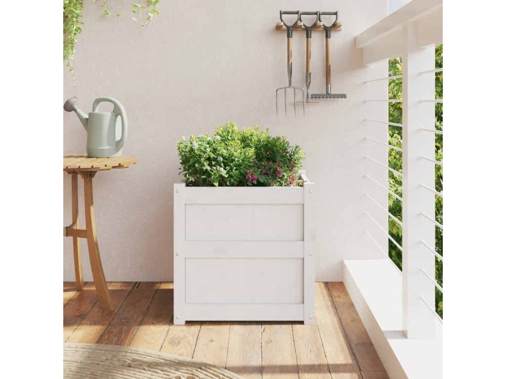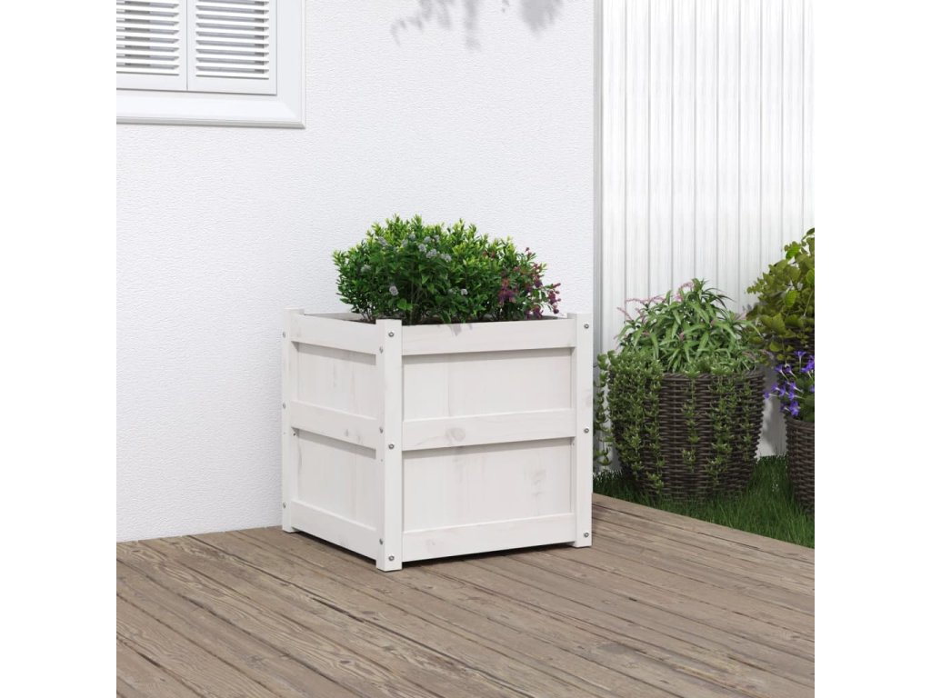 Zahradní truhlík bílý 50 x 50 x 50 cm masivní borovice 837416