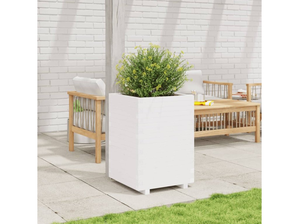 Zahradní truhlík bílý 50 x 50 x 72,5 cm masivní borovice 3282575