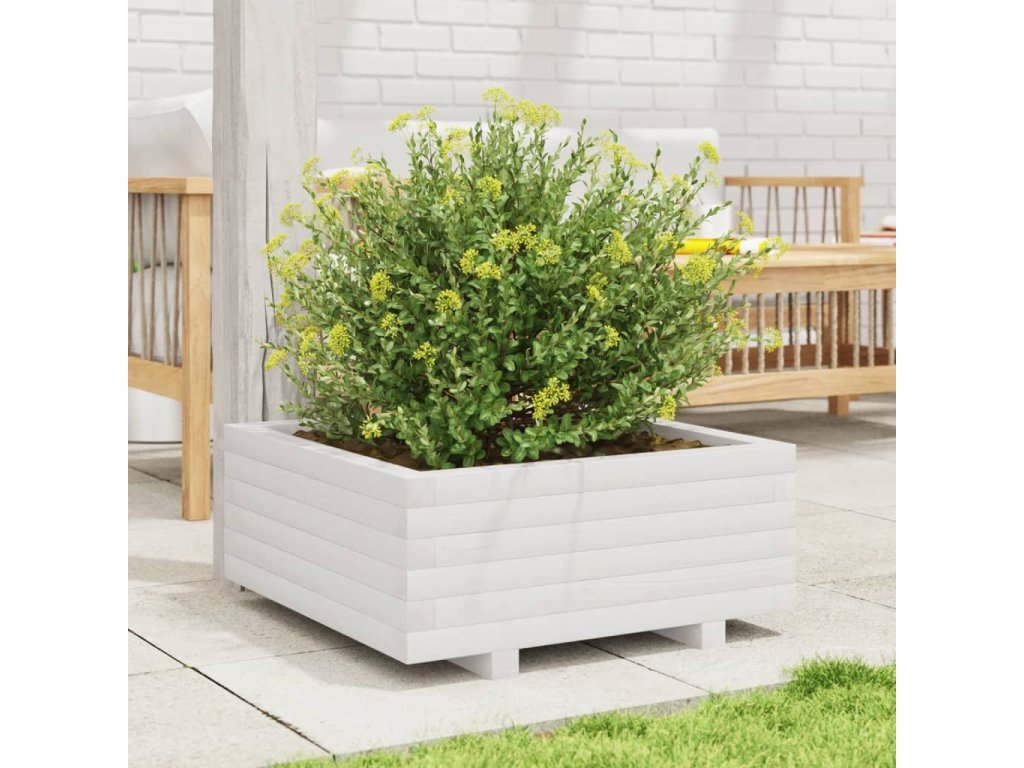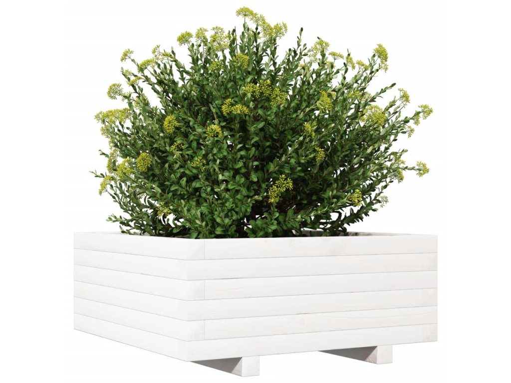 Zahradní truhlík bílý 60 x 60 x 26,5 cm masivní borovice 847299