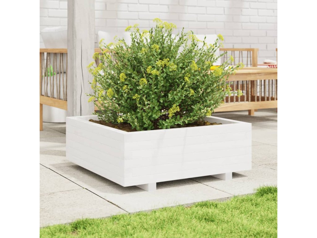 Zahradní truhlík bílý 70 x 70 x 26,5 cm masivní borovice 847304