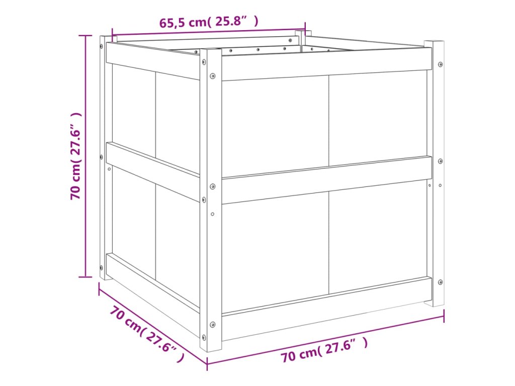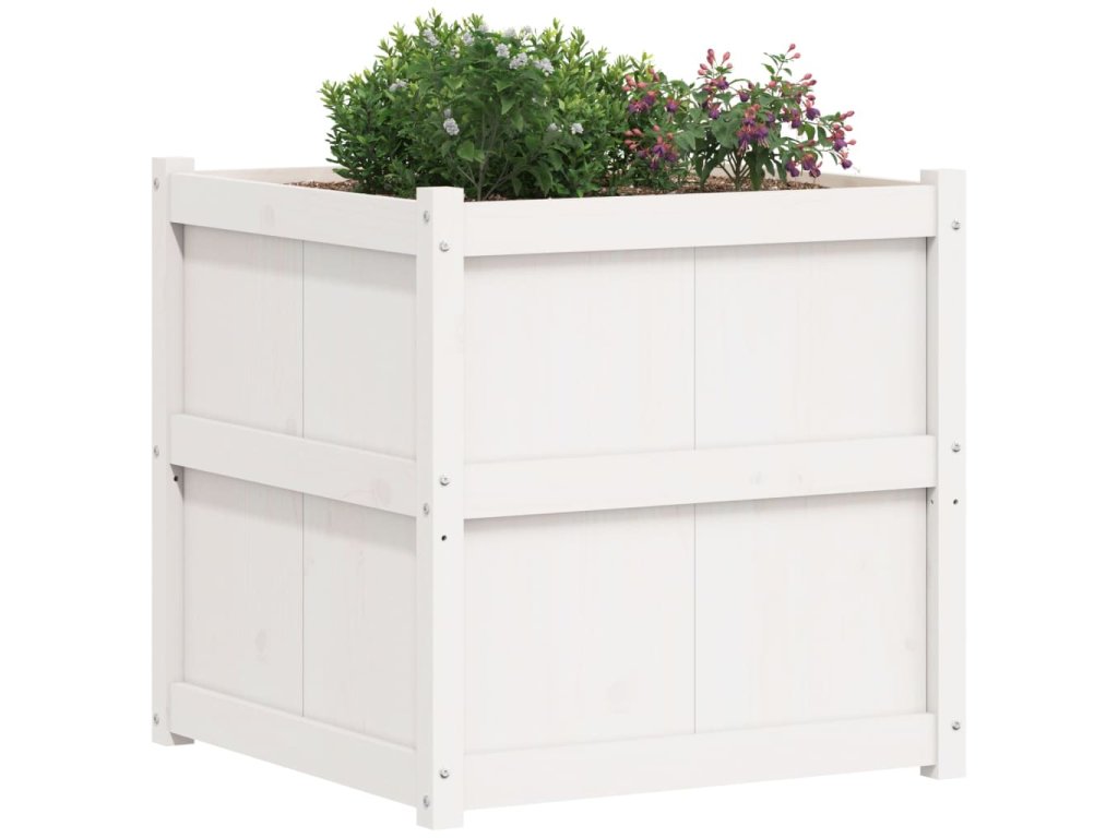 Zahradní truhlík bílý 70 x 70 x 70 cm masivní borové dřevo 837435