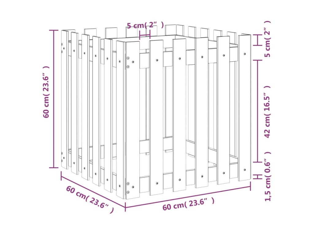 Zahradní truhlík plotový design 60x60x60 cm masivní douglaska 832460