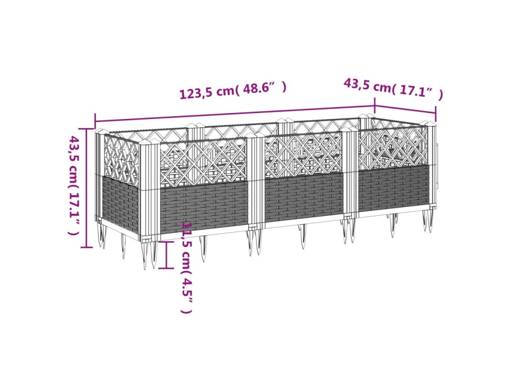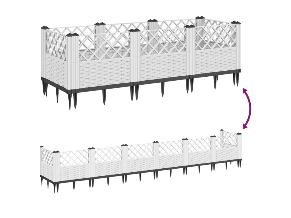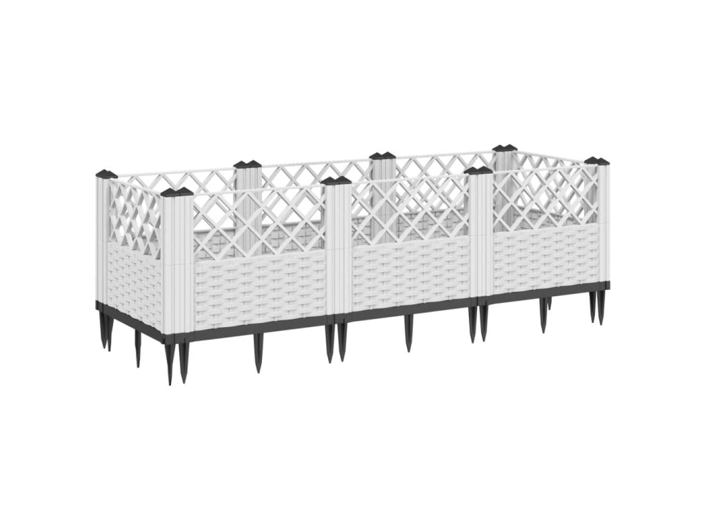 Zahradní truhlík s kolíky bílý 123,5 x 43,5 x 43,5 cm PP 368020