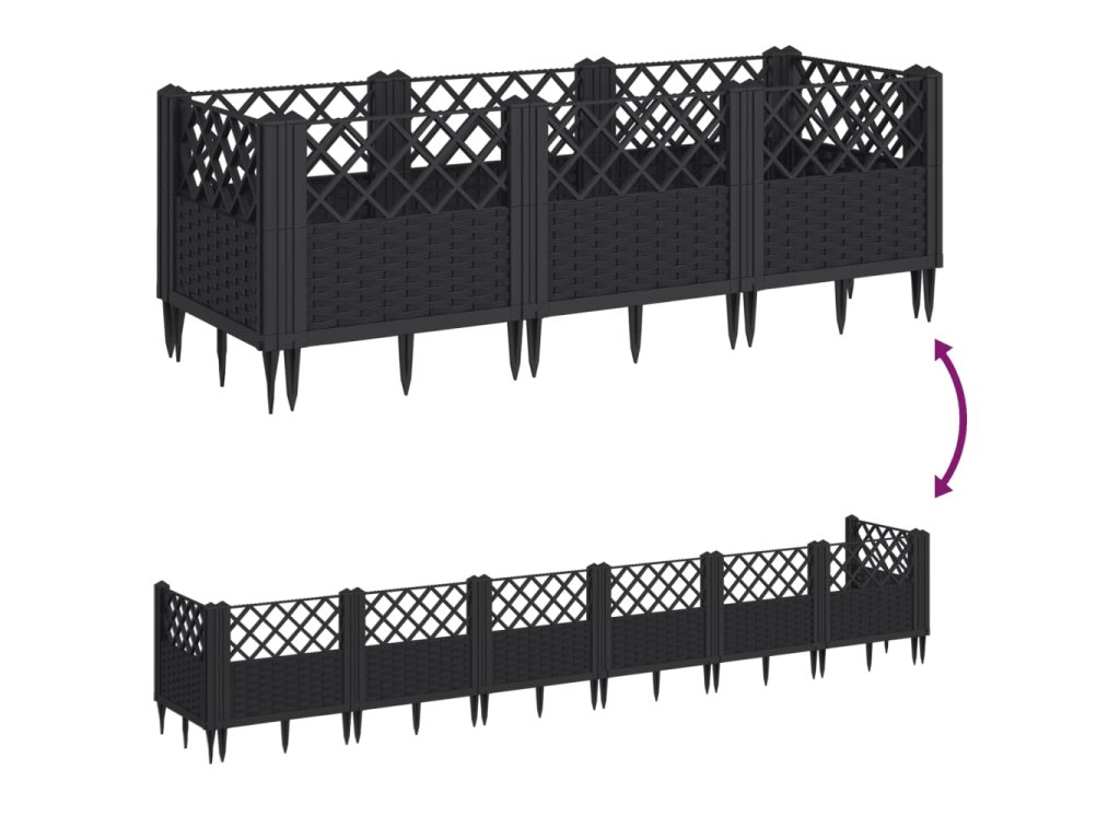 Zahradní truhlík s kolíky černý 123,5 x 43,5 x 43,5 cm PP 368017