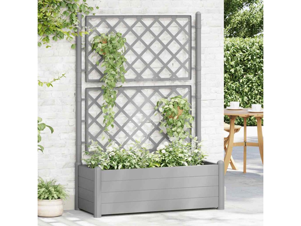 Zahradní truhlík s treláží 100 x 43 x 142 cm PP kamenný šedý 317582