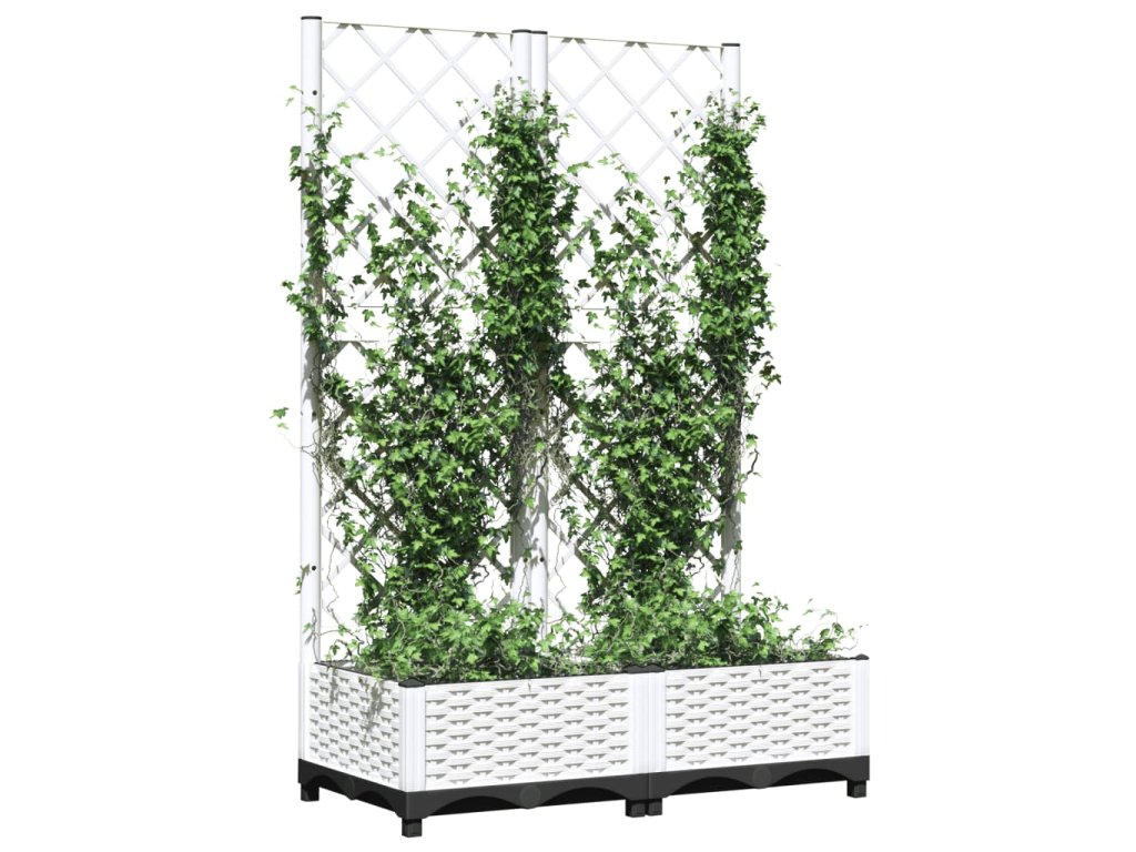 Zahradní truhlík s treláží bílý 80 x 40 x 121,5 cm PP 153281