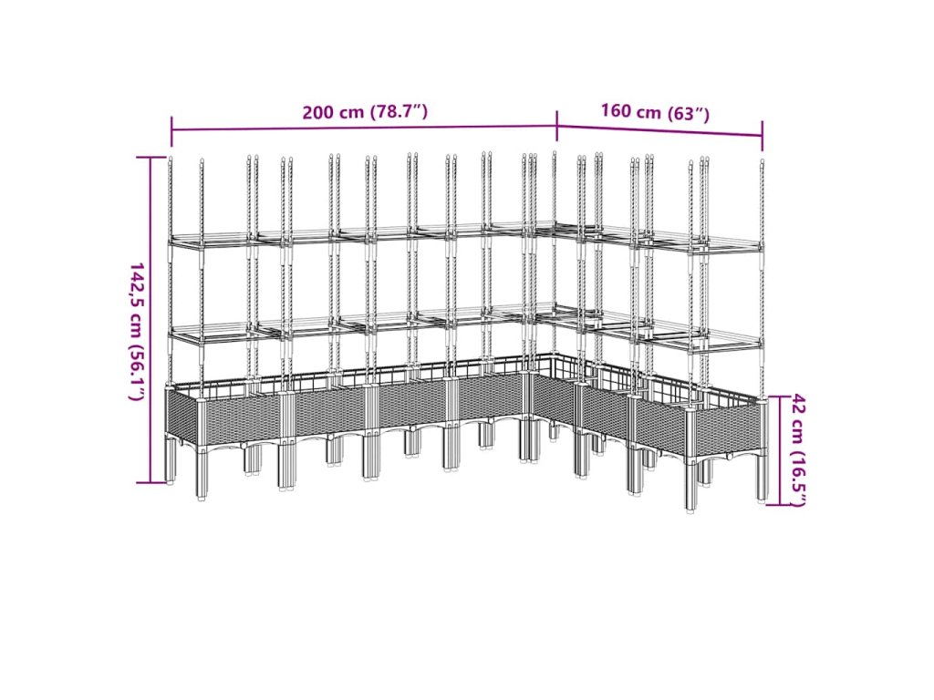 Zahradní truhlík s treláží světle šedý 200 x 160 x 142,5 cm PP 367972