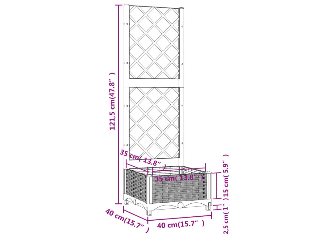 Tento zahradní truhlík s treláží představuje skvělé řešení pro pěstování popínavých rostlin na zahradě, verandě nebo terase.