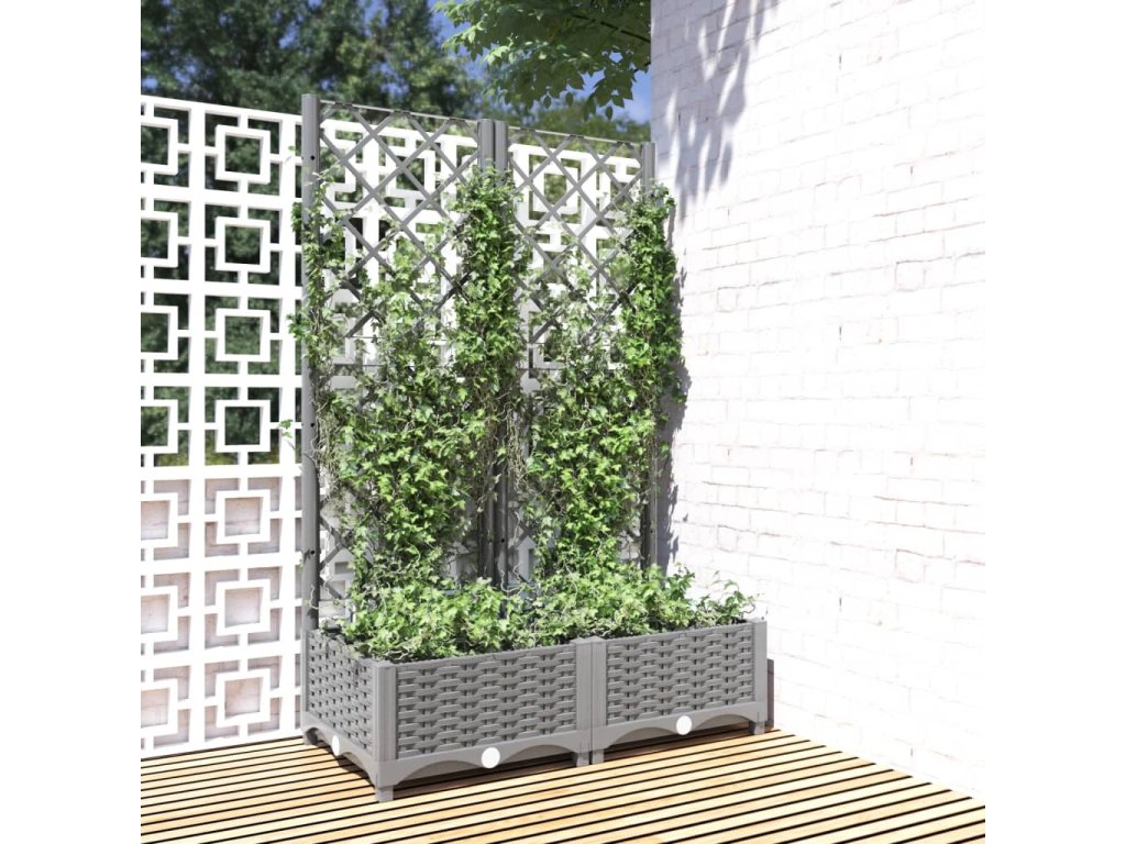 Zahradní truhlík s treláží světle šedý 80 x 40 x 121,5 cm PP 153271
