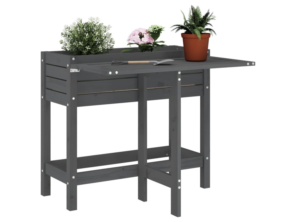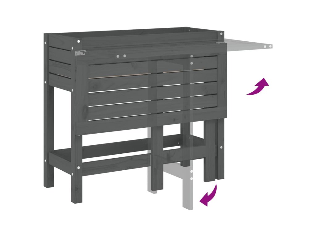 Zahradní truhlík se skládacím stolkem šedý masivní borové dřevo 825123