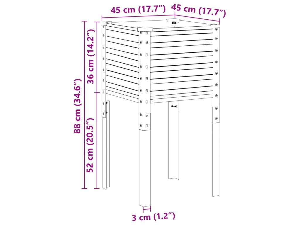 - Odolný materiál: Vyvýšený záhon je vyroben z oceli, takže dobře vzdoruje povětrnostním vlivům a je velmi praktický pro venkovní použití.